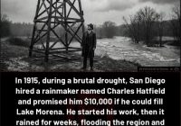 unbfacts: In 1915, during a brutal drought, San Diego hired a rainmaker named Charles Hatfield and promised him $10,000 if he could fill Lake Morena. He started his work, then it rained for weeks, flooding the region and even breaking the Lower Otay Dam. After the chaos, the city argued the rain was an act… Read More »