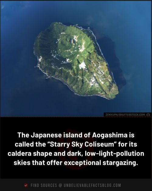 The Japanese island of Aogashima has been called the “Starry Sky Coliseum” because of its unique shape and its great view of the stars due to lack of light pollution.