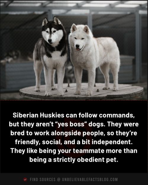 Siberian Huskies will obey if required to, but their natural tendency is to be cooperative rather than obedient, and they prefer to be companions rather than mere pets.