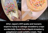 unbfacts: After Japan’s 2011 quake and tsunami, experts trying to salvage strawberry crops accidentally found that a liquid strawberry polyphenol could solidify cream. That discovery led to “Kanazawa Ice”—popsicles that keep their shape for minutes, even under a hair dryer, though they eventually soften. Source