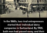 unbfacts: In 1866, two separate entrepreneurs started competing milk companies in Switzerland. By 1905, when both men were dead, the two companies merged to become Nestle. Source