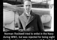 unbfacts: Norman Rockwell tried to enlist in the Navy during WW1, but was rejected for being eight pounds underweight. He successfully enlisted the next day after spending the night gorging himself on bananas, liquids and doughnuts. Source